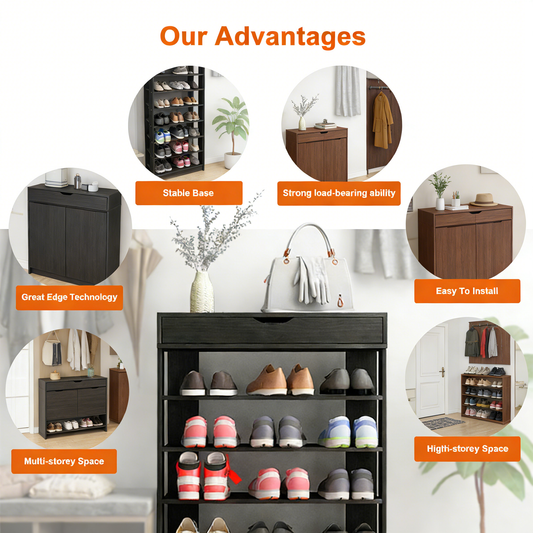 Freestanding Shoe Rack Organizer with Storage Drawer