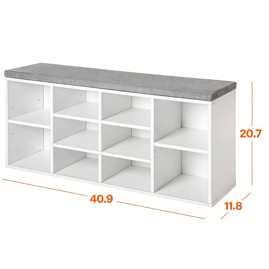 Shoe Storage Bench with 10 Cubbies, Adjustable Shelves Entryway Bench with Detachable Cushion